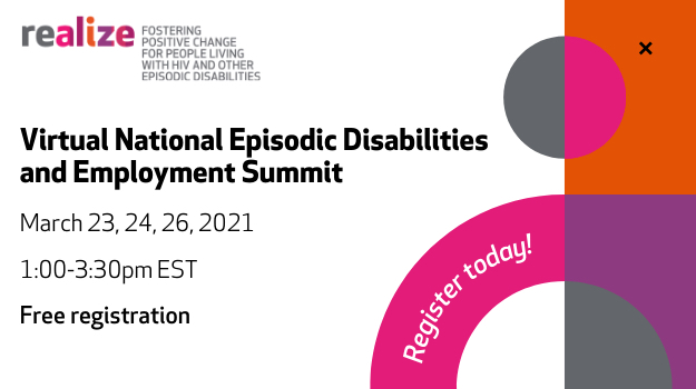 Session Topic Coming March 23rd, 24th, and 26th, 2:00pm - 4:30pm, Realize is hosting their free, First Ever Virtual National Episodic Disabilities and Work Summit! There will be something to learn for everyone, from people living with episodic disabilities to employers and HR professionals who accommodate employees. Speakers include: